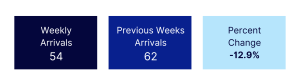 Perhaps the most striking development this week was the dramatic 45% decline in container vessel arrivals, dropping from 20 to just 11 vessels. This significant reduction likely reflects ongoing supply chain adjustments as the industry continues to navigate post-pandemic logistics patterns and evolving global trade dynamics.